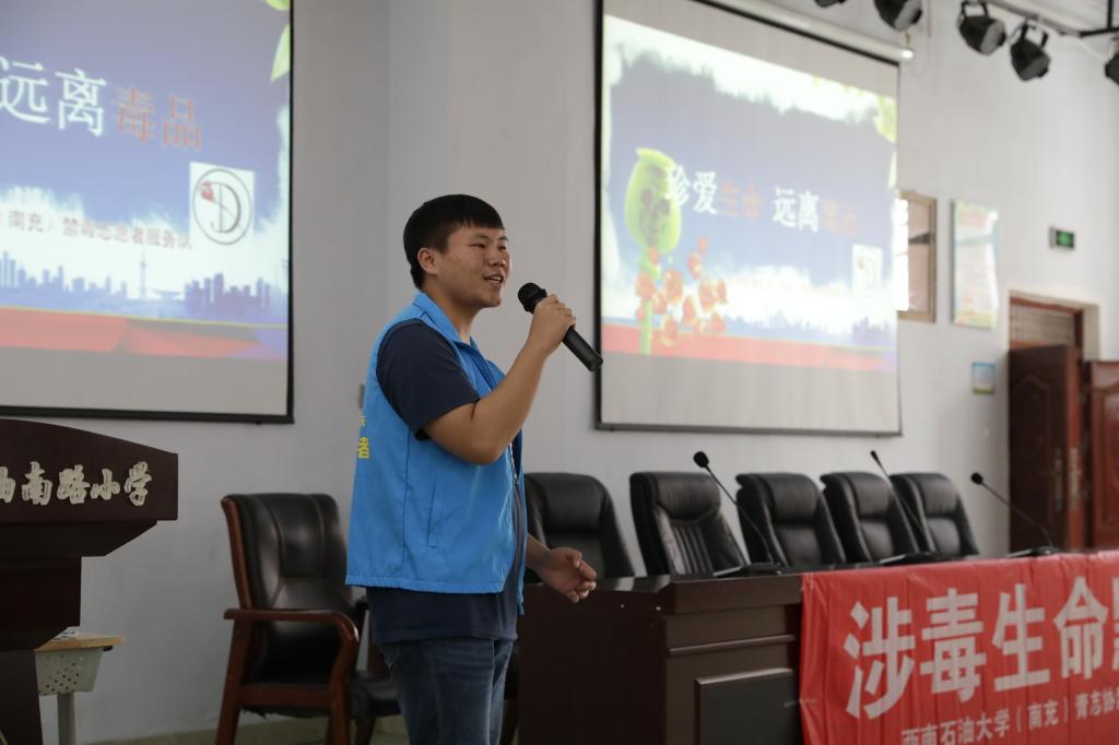 3月28日下午,校團委學生會青年志愿者協會禁毒志愿服務隊前往南充市石油南路小學,并在學校的大禮堂里開展禁毒宣傳活動。