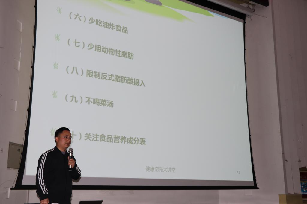 楊主任用視頻《健康本該如此》展示如今中國人所存在的各種健康隱患,引出本次演講的主題,他提出當代青少年過度沉迷虛擬世界,從而導致作息規律紊亂,因而引發各種慢性疾病問題。并說明了各種慢性疾病的由來及危害,展示了如今國人身體狀態多處于亞健康的數據調查結果,以此來告誡聽眾需要時刻關心自身的身體狀況。