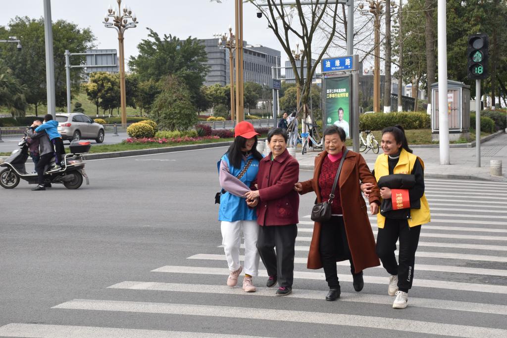 志愿者扶老人過馬路