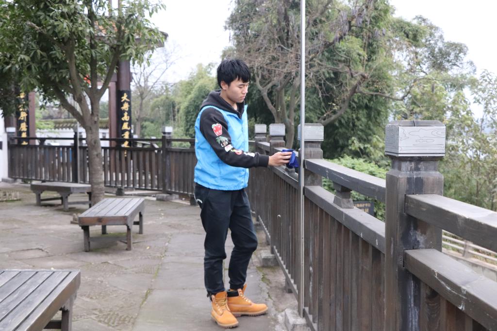 志愿者擦拭牌匾