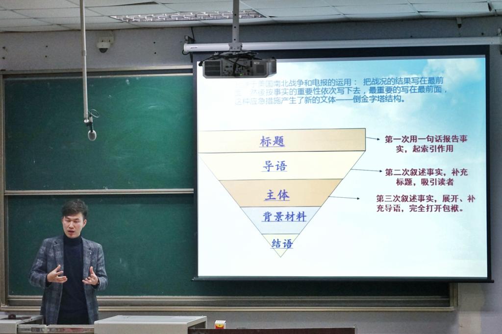 為提高學生干部新聞寫作的能力,12月19日晚上7點,西南石油大學南充校區第二屆團校暨青馬工程培訓第四次課堂講座——“校園新聞寫作培訓”于4416教室開展,講座邀請到周煊涵老師作為主講人。