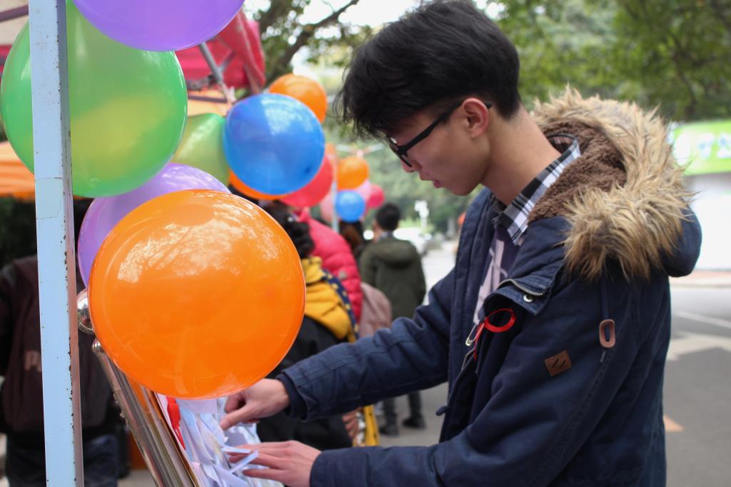 上午十點,生命綠舟協會的理事便已經開始活動的各項準備工作了。十一點半活動正式開始。不到一會,各個活動的桌前都排起了長長的隊伍。同學們都自覺地遵守活動的流程,從簽字到知識競答。但最受歡迎的活動環節是“艾”的圈圈,許多人都套中了獎品。整個活動過程歡快而輕松。