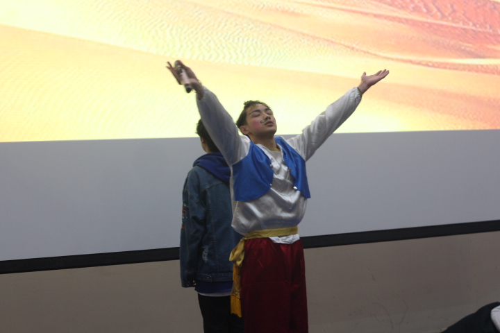 “夢景之夜”晚會的第一個環節為抖音作品展示及評選結果頒獎。主持人公布獲勝作品名單并現場贈予參賽者獎品。第二環節為語言類節目比賽,共有4支團隊參加。第一個節目是小品《燈神》,講述了阿拉丁燈神幫助公主和自己的愛人長相思守的故事,其中燈神醉酒后搞怪的舞姿使得大家開懷大笑。其后的小品《學生時代》講述了一名“老師”和一群正處于青春叛逆期的同學在“優秀班集體”評選中的故事,充分展現了青蔥歲月里的點滴美好。觀眾們都被“老師”最后語重心長的話感動。暖場歌曲《紅顏舊》曲調意味悠長,采用男女深情對唱的方式讓歌曲更是深入人心。在觀眾互動環節中,自愿上臺的觀眾用不同的情緒讀一段臺詞,令全場捧腹大笑。此環節為同學們創造了更多交流機會,使活動變得新奇有趣。互動環節后便是第三個小品《飛天夢》,講述一個不靠譜的師傅帶著三個不靠譜的徒弟干一件靠譜的事——飛天。小品《醫托》向同學們展示了三“假”醫院的內幕,搞笑的同時也飽含深意,發人深省。最后活動以民樂合奏《春江花月夜》壓軸,清澈悠揚,給人以意猶未盡之感。