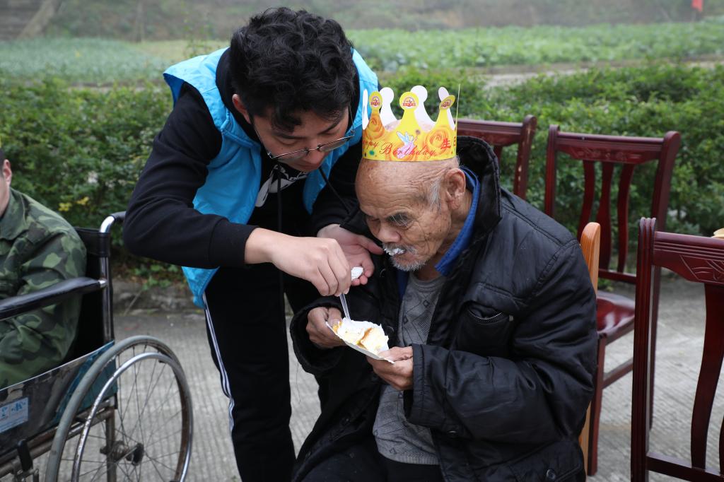 喂老人吃蛋糕