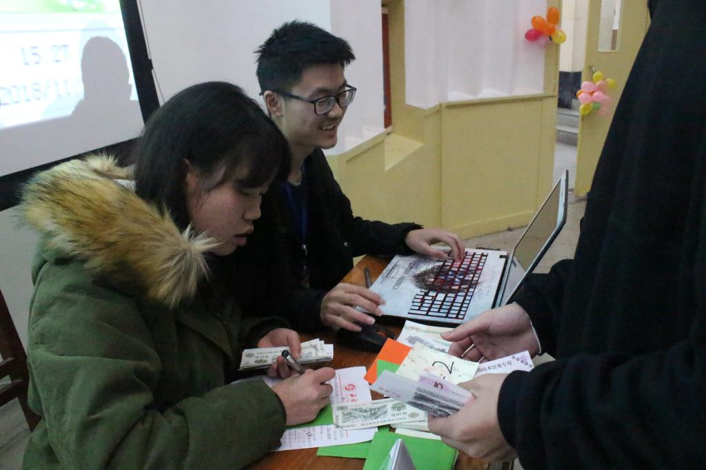 本次大賽由商業(yè)模擬協(xié)會(huì)宣傳理事廖興鑫主持。參與本次大賽的模擬公司分別為A、B、C三個(gè)公司。三個(gè)公司將分別進(jìn)行三輪融資活動(dòng),通過(guò)競(jìng)爭(zhēng)活動(dòng)來(lái)贏取觀眾手中的股票。活動(dòng)中,主持人首先對(duì)投資進(jìn)行了現(xiàn)場(chǎng)答疑。答疑之后,融資活動(dòng)正式開始。第一輪競(jìng)爭(zhēng)活動(dòng)的內(nèi)容是傳板任務(wù),第二輪的競(jìng)賽內(nèi)容為踩氣球,而第三輪則比的是數(shù)樣鈔的速度。三個(gè)公司的成員在活動(dòng)過(guò)程中都表現(xiàn)得十分積極,最終三個(gè)公司的股票被成功買完。接著是抽獎(jiǎng)環(huán)節(jié),主持人根據(jù)事先確定好的每個(gè)觀眾對(duì)應(yīng)號(hào)碼,通過(guò)隨機(jī)取號(hào)的方式來(lái)確定幸運(yùn)觀眾,最終22、23、46號(hào)觀眾獲獎(jiǎng)。活動(dòng)最后,主持人為觀眾播放了股票投資視頻。