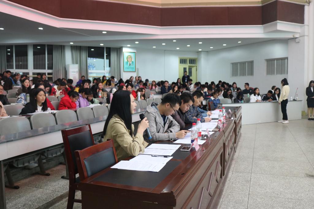 10月23日晚,財(cái)經(jīng)學(xué)院在多功能學(xué)術(shù)報(bào)告廳舉辦了暑期社會(huì)實(shí)踐答辯會(huì)。本次活動(dòng)由院學(xué)生會(huì)社會(huì)活動(dòng)部承辦,學(xué)院輔導(dǎo)員楊智光、謝曜勵(lì)、曾和麗,學(xué)院教學(xué)干事劉全以及院學(xué)生會(huì)2名代表?yè)?dān)任答辯會(huì)評(píng)委。學(xué)院約400名同學(xué)觀摩了答辯會(huì)。