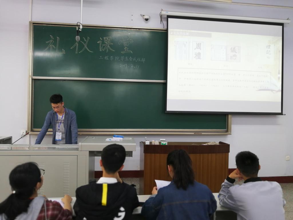 4月11日下午,工程學院在第四教學樓301教室開展“禮儀課堂”培訓活動。本次禮儀課堂由工程學院學生會禮儀部蒲恩哲主講。