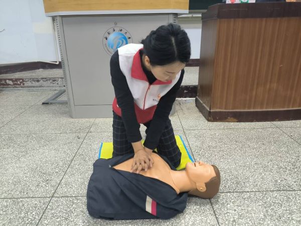 培訓(xùn)老師講解了心肺復(fù)蘇的理論知識(shí)和操作流程,并結(jié)合教具演示,介紹了急救方法。同時(shí),培訓(xùn)老師講解了創(chuàng)傷包扎、骨折固定、氣道異物梗阻排除等急救知識(shí),并現(xiàn)場(chǎng)作了示范講解。同學(xué)們?cè)谂嘤?xùn)老師的指導(dǎo)下,進(jìn)行了實(shí)操練習(xí),并在培訓(xùn)課程結(jié)束后參加了實(shí)操考核,進(jìn)一步鞏固了培訓(xùn)知識(shí),提升了應(yīng)急救護(hù)能力。(新能源與材料學(xué)院/毛玉林 李艾珂 陳瑞環(huán))