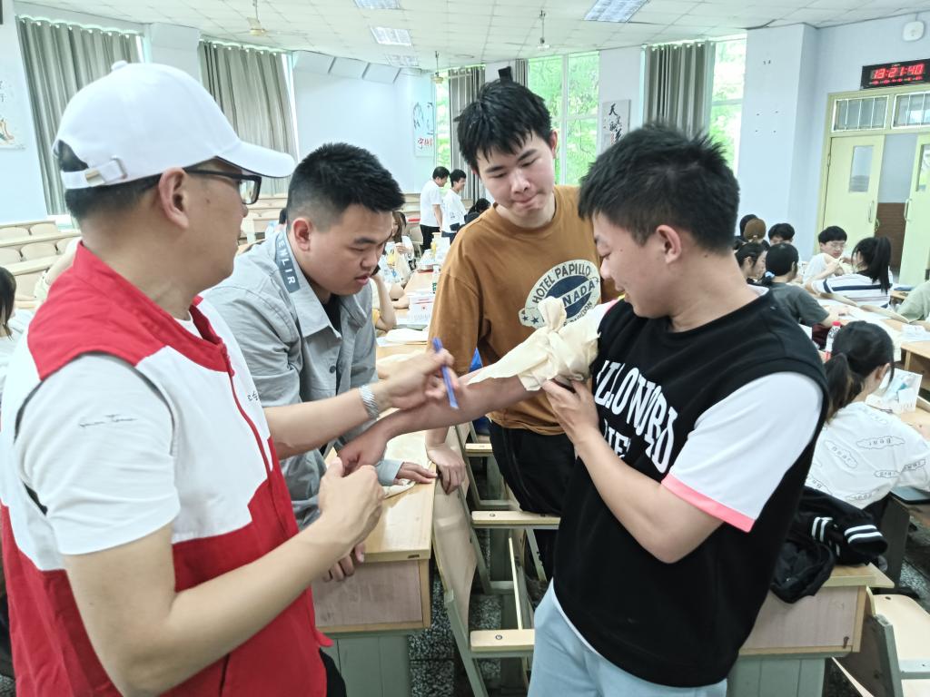 為檢驗(yàn)學(xué)習(xí)成果,紅十字工作人員對(duì)培訓(xùn)的同學(xué)們進(jìn)行一對(duì)一現(xiàn)場(chǎng)實(shí)操考核,近60名同學(xué)考核通過,獲得紅十字救護(hù)員證書。(土木工程與測(cè)繪學(xué)院文/江林 張?jiān)婄?圖/羅舒芮)