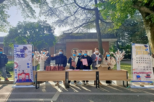 為表達學院師生對考研學子的關心和祝福,鼓勵考研學子堅定信心,全力沖刺全國碩士研究生招生考試,12月19日上午,土木工程與測繪學院、新能源與材料學院全體輔導員在外語村為學院考研學子贈送了考研大禮包,祝福同學們金榜題名。