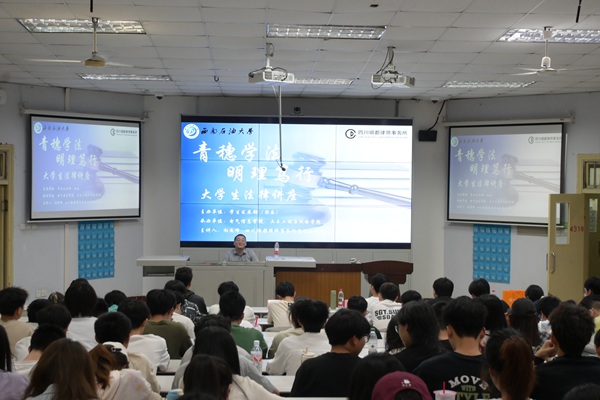 為深入學習貫徹習近平法治思想,助力校園法治文化建設,4月27日,校區特別邀請了四川綢都律師事務所在第四教學樓4316教室開展了“青穗學法,明理篤行”專題普法講座。本次講座由學生發展部(團委)主辦,土木工程與測繪學院和電氣信息學院承辦,共計210名同學參加。