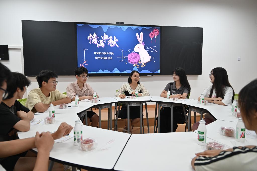 為增添節日氛圍,讓中秋節留校新生感受到學院溫暖,9月15日,計算機與軟件學院開展了新生中秋慰問活動。學院學生工作辦公室(團總支)主任胡丹,2024級輔導員唐明森參加活動。