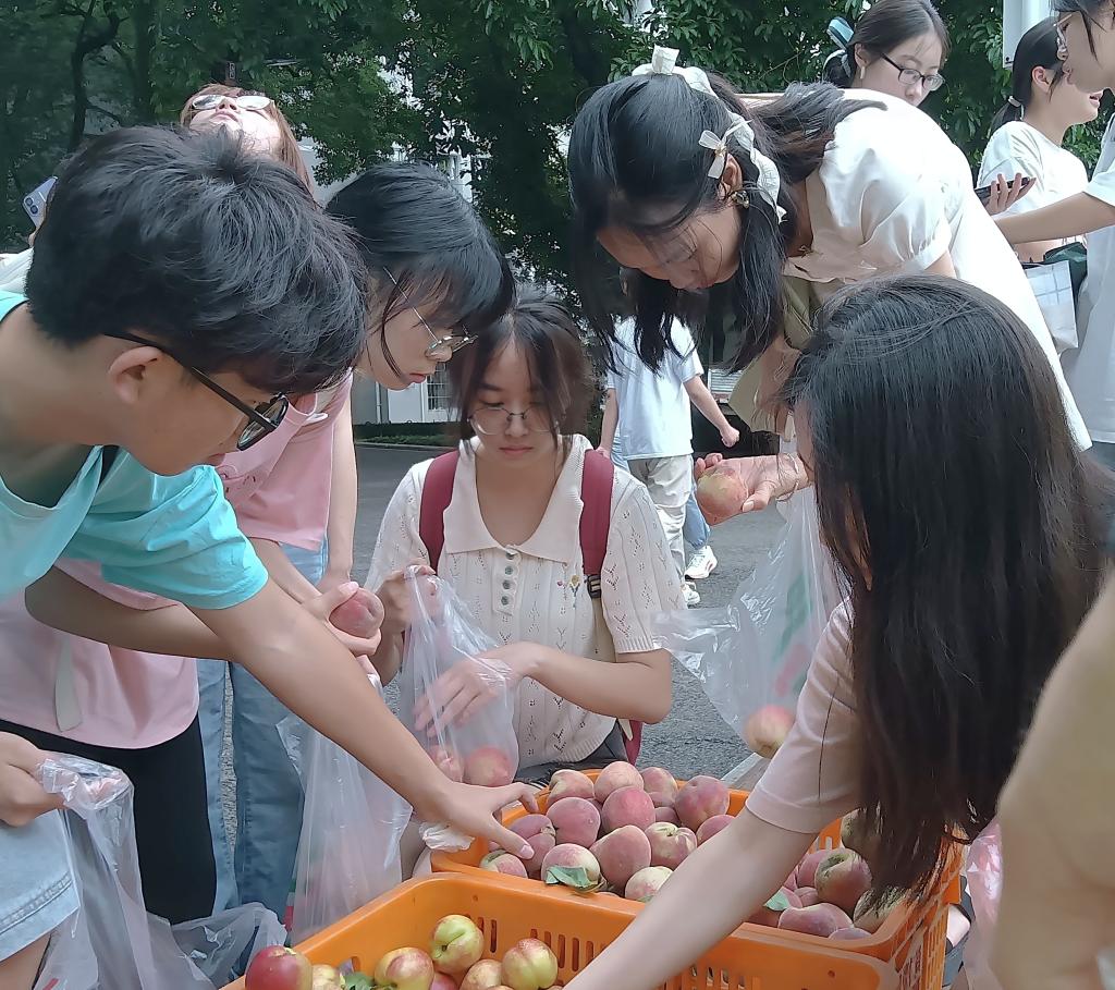 通過與農(nóng)戶溝通協(xié)調,此次助銷活動采用線上掃碼下單和線下現(xiàn)場購買相結合的方式進行。線上活動中,同學們在活動群里下單,志愿者迅速打包配送到寢室,確保每位同學都能及時收到水果。線下活動中,志愿者在龍井湖觀景臺設立擺攤點,與果農(nóng)一起熱情吆喝并幫忙打包,同學們也爭相購買,為助力果農(nóng)獻上一份愛心。本次愛心助農(nóng)活動共計幫助果農(nóng)銷售西瓜、桃子等水果1000余斤,銷售額達3500余元。