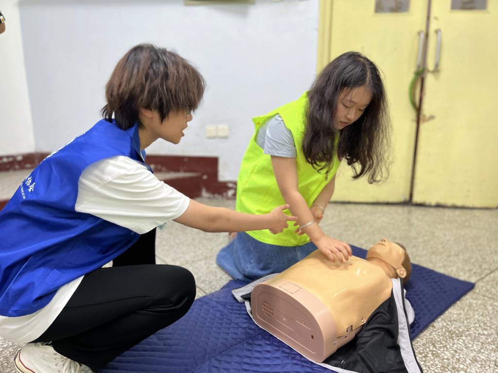 活動(dòng)中,培訓(xùn)人員借助道具,向同學(xué)們講解了心肺復(fù)蘇法、海姆立克急救法、外傷、骨折、燒(燙)傷、中暑等常見急癥及意外傷害突發(fā)事件處理的相關(guān)救護(hù)知識(shí)及技能。同學(xué)們?cè)谂嘤?xùn)人員的專業(yè)指導(dǎo)下進(jìn)行了實(shí)操演練,進(jìn)一步提高了緊急情況下同學(xué)們急救能力和水平。
