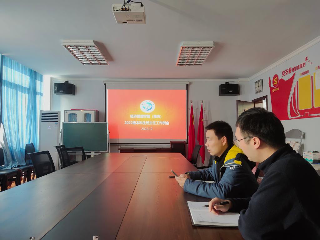 12月8日,經(jīng)濟(jì)管理學(xué)院在完井樓401通過(guò)線上線下相結(jié)合的方式舉行2022級(jí)班主任工作第一次會(huì)議。經(jīng)濟(jì)管理學(xué)院輔導(dǎo)員楊智光、謝曜勵(lì)和全體2022級(jí)班主任參加此次會(huì)議。