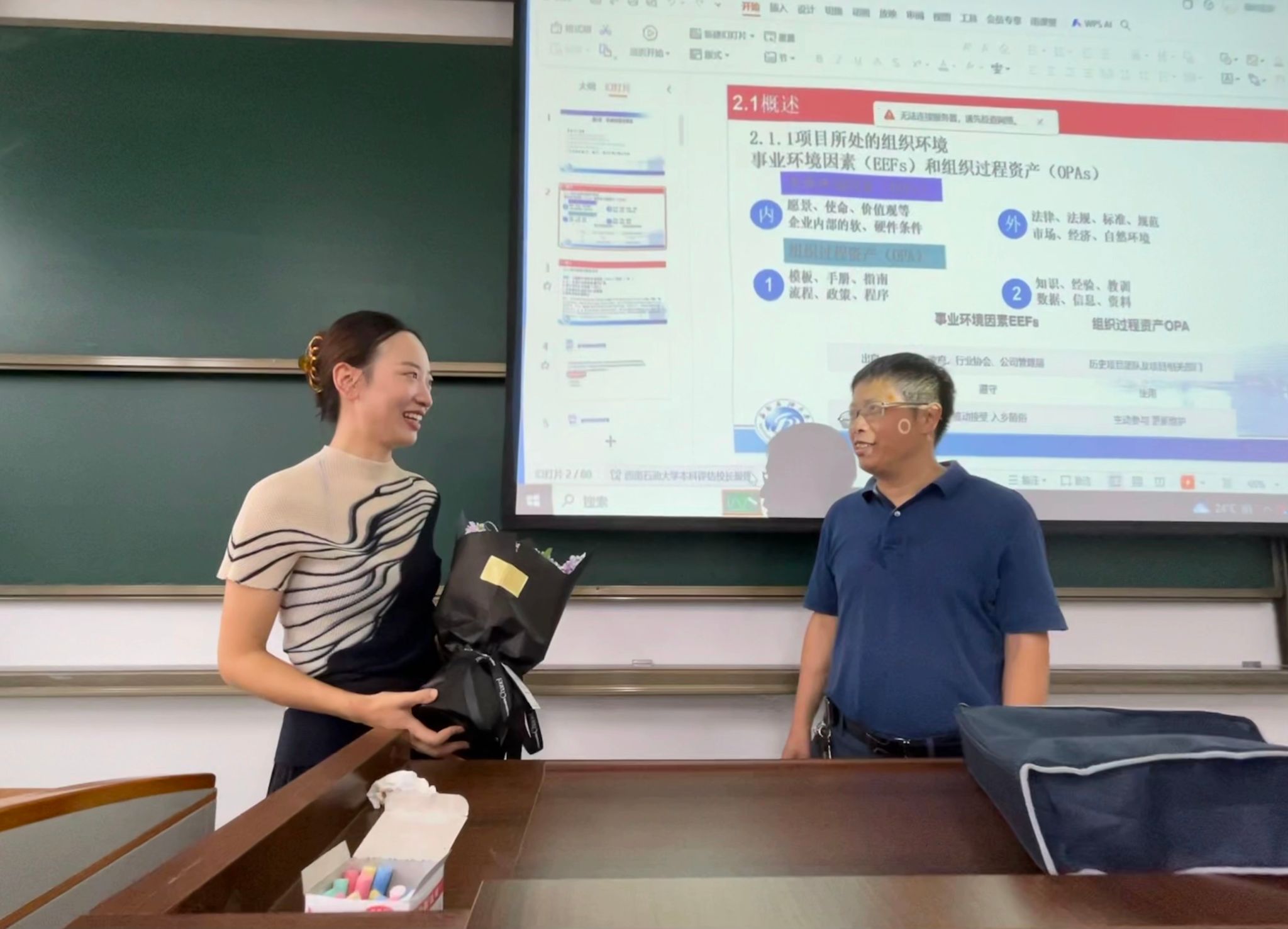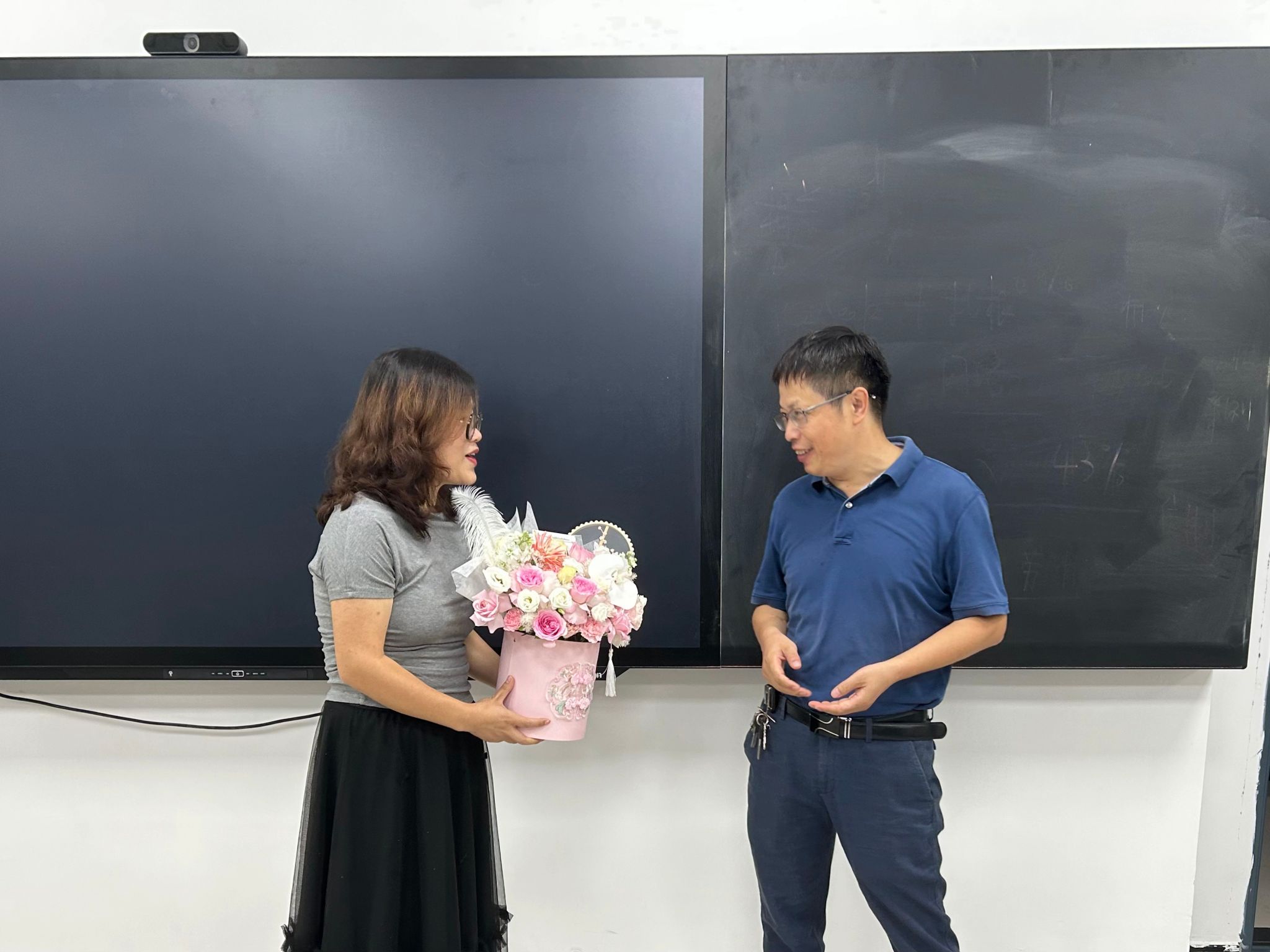 上午8時起,學院副院長彭雙帶領辦公室工作人員,先后走進第四教學樓、實驗樓等教學場地,為在崗授課教師送上鮮花。每到一處,他都與教師親切交流,詢問教學進度、課堂反饋及工作難點,叮囑大家平衡工作與健康,并強調“教師是學院發展的核心力量,學院將持續為大家搭建優質教學科研平臺”。