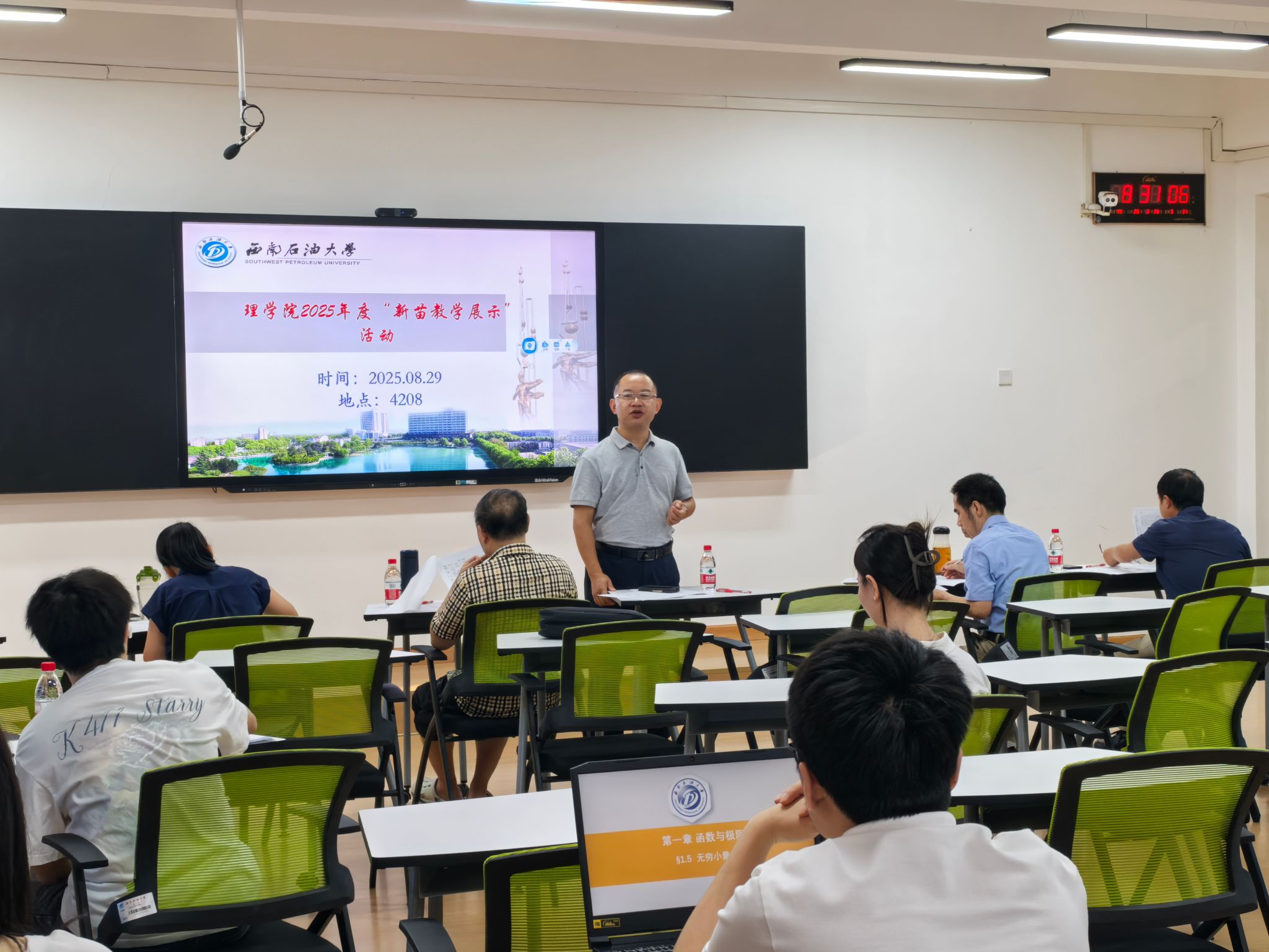 為進一步提升教師教學水平,促進青年教師專業成長,8月29日,理學院在南充校區成功舉辦2025年度"新苗教學展示"活動。此次活動由理學院副院長稅正偉主持,全體教師參與。