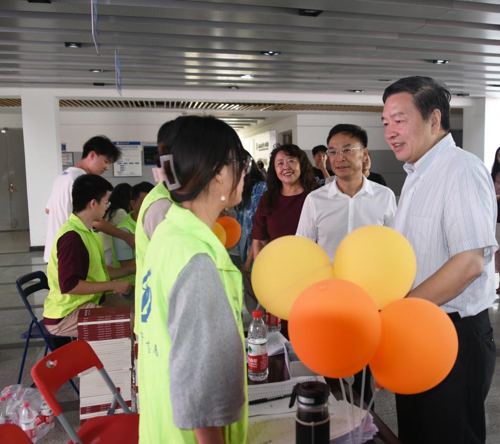 8日上午,校黨委書記陳永燦,校黨委副書記、校長張烈輝,校黨委副書記、校工會主席衡彤一行檢查指導了迎新工作,同2023級新同學及家長親切交流,看望慰問迎新志愿者和工作人員。陳永燦一行先后在東大門、經管院、博學廣場、石工院等迎新點和迎新志愿服務站,檢查新生入校各個環節,了解新生入學報到人數、報到工作進展等情況,提醒各學院要做好服務,把好新生入口關,給新生提供熱情周到的服務,讓新生感受到家的溫暖。陳永燦一行還與新生親切交談,了解他們的入學感受,囑咐新生盡快適應大學生活,把握大學時光。