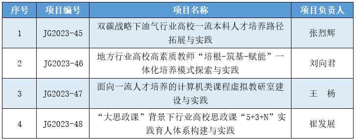 近日,四川省教育廳公布了2023年四川省高等教育人才培養和教學改革重大項目立項結果,我校申報的“雙碳戰略下油氣行業高校一流本科人才培養路徑拓展與實踐”等4個項目全部獲批。據悉,此次省教育廳共立項100個重大教改項目和21個重大教改培育項目。