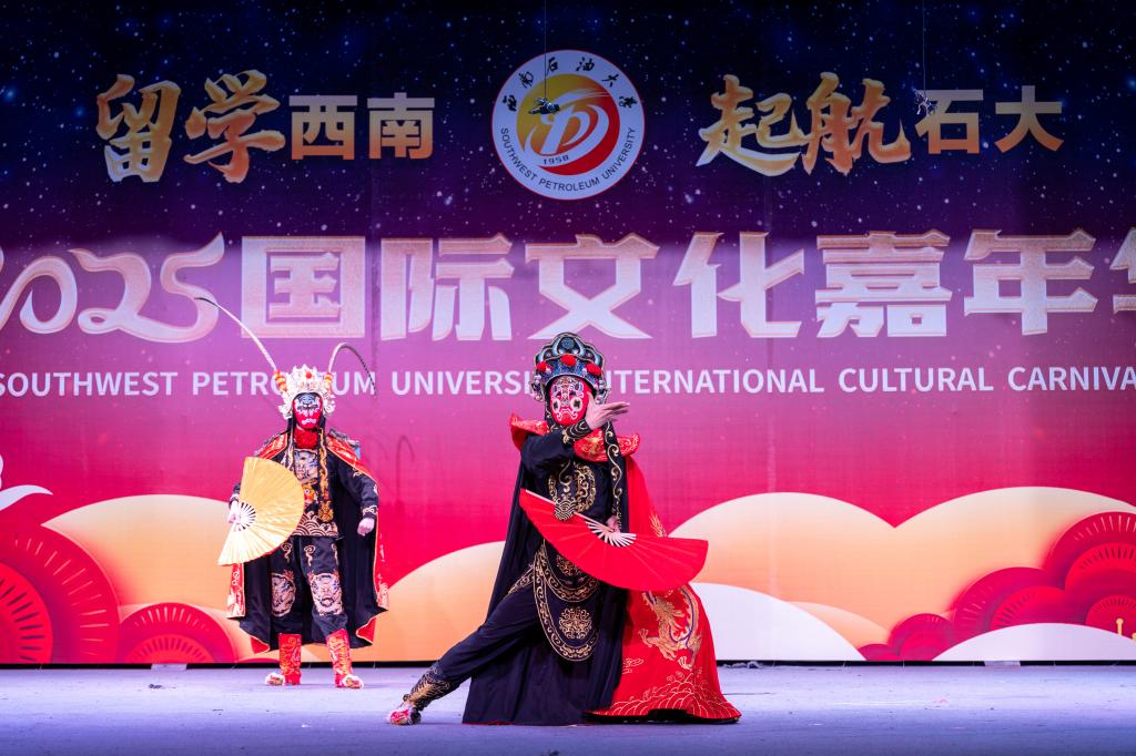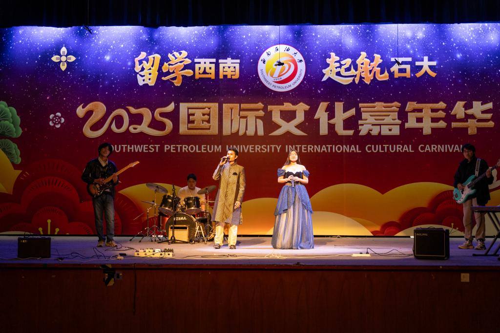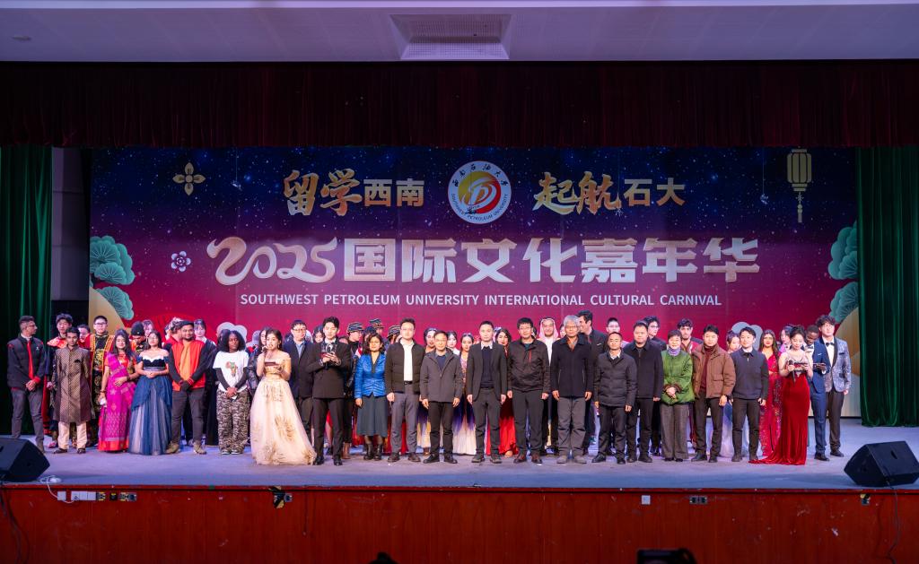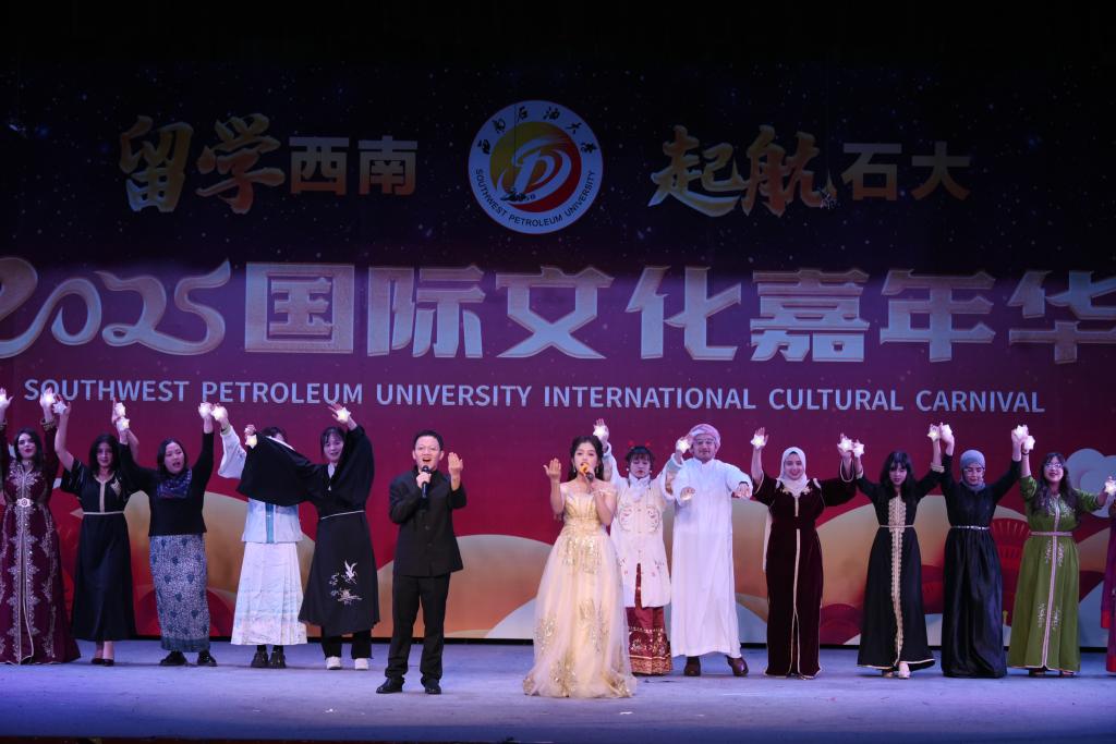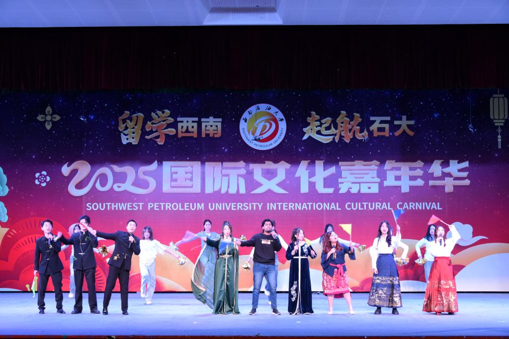 12月12日晚,藝術大樓演播廳鼓樂齊鳴,中外學生載歌載舞,以“留學西南·起航石大”為主題的2025國際文化嘉年華隆重上演。