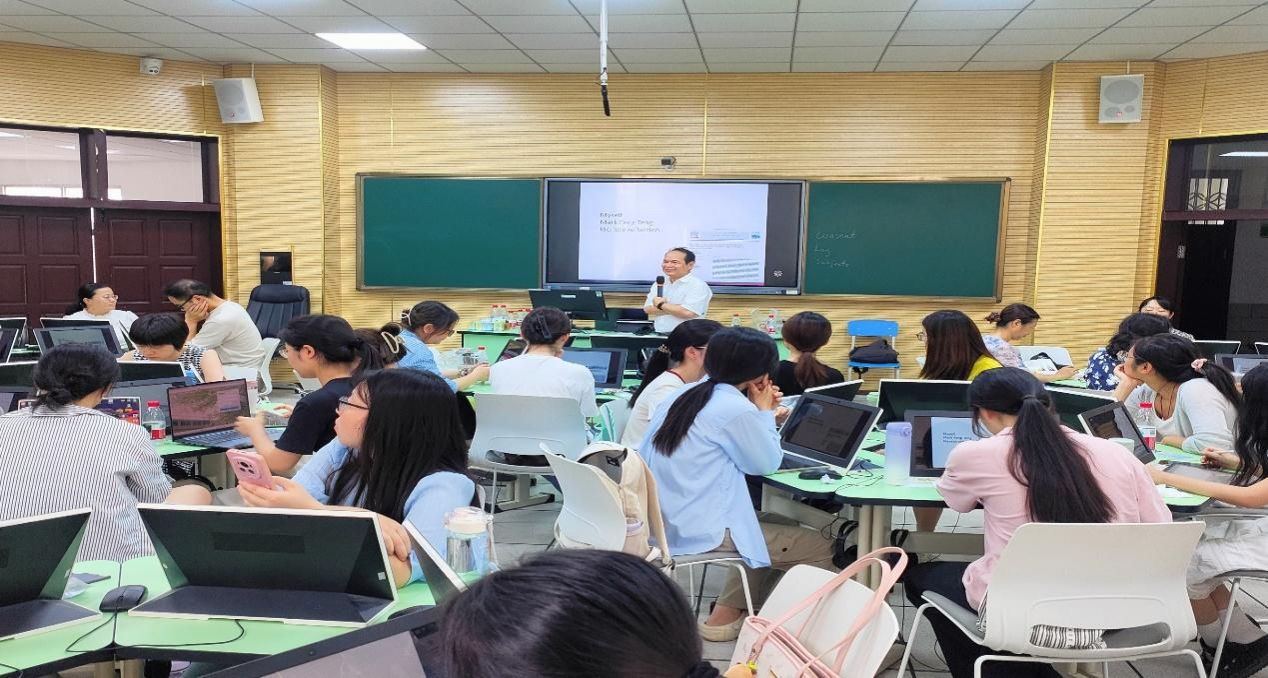 6月16日至18日,學(xué)院邀請澳門理工大學(xué)滕鋒教授和香港恒生大學(xué)貝曉越教授來校講學(xué)。兩位大伽圍繞文獻(xiàn)研究、學(xué)術(shù)寫作、人工智能應(yīng)用等前沿課題做了六場報(bào)告并與教師們一對一交流。專家們指出:“教師應(yīng)當(dāng)超越工具性使用,培育AI素養(yǎng)這一新型核心能力。既要善用智能技術(shù)提升研究效能,更需保持學(xué)術(shù)主體性,通過真實(shí)語料和扎實(shí)論證,構(gòu)建人機(jī)協(xié)同的研究新范式。”院長呂旭英說,學(xué)院引進(jìn)頂尖學(xué)術(shù)資源,希望推動(dòng)教師從教學(xué)能手向?qū)W者型教師轉(zhuǎn)型,為學(xué)科建設(shè)與人才培養(yǎng)注入新動(dòng)能。
