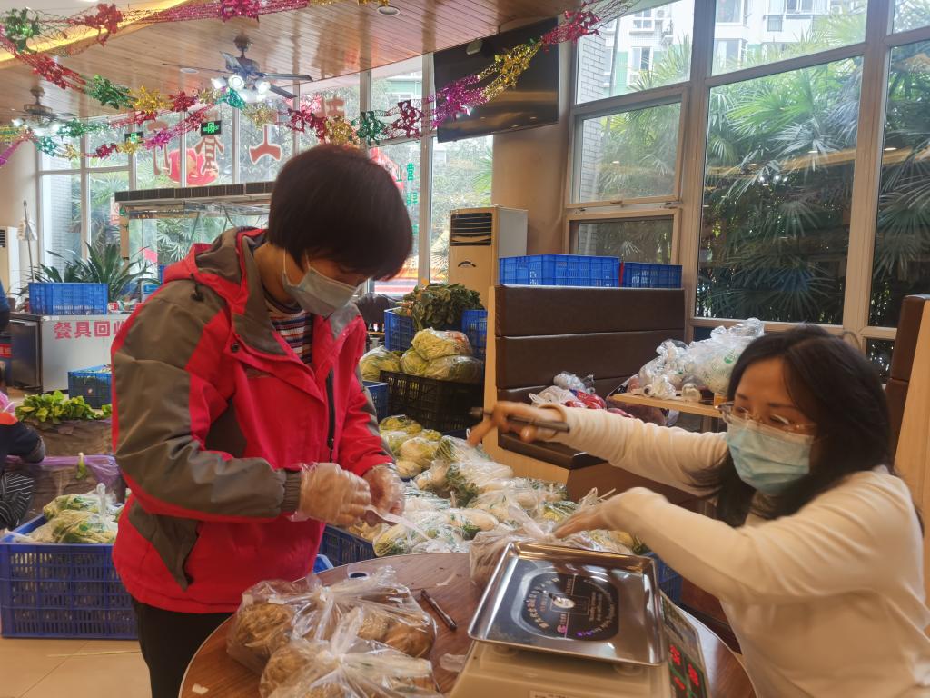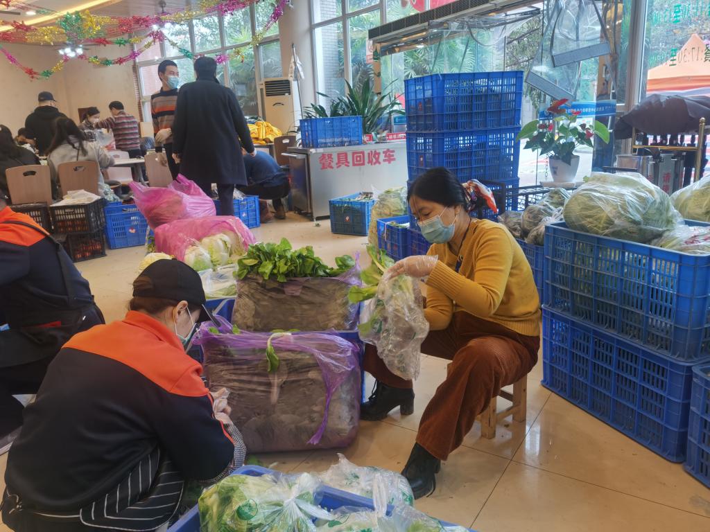 “真快!我們昨天也是差不多這么多菜,忙到了晚上8點,今天才5點半就弄完了,真是人多力量大呀!”這是后勤服務總公司總經理賴啟正在30余名教職工和家屬志愿者協助搬運分裝蔬菜后發出的感慨。