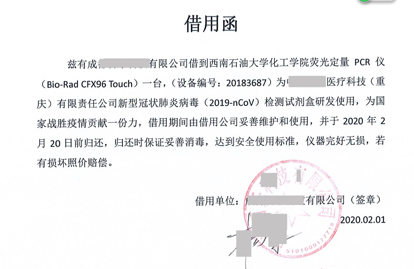 此外,化工院還獲知了某防疫一線試劑生產廠家需求監測設備的消息后,第一時間將這一情況報告給學校,在獲得學校批準后,化工院主動將PCR擴增儀送到該廠家,用于防疫一線。