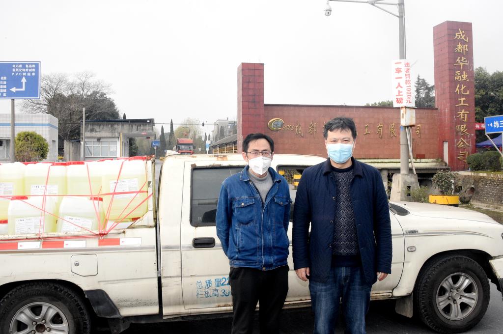 2月13日,在化工院教師王林元的聯系協調下,學校產學研基地、成都華融化工有限公司向學校捐贈了2噸84消毒液,為學校疫情防控助力。
