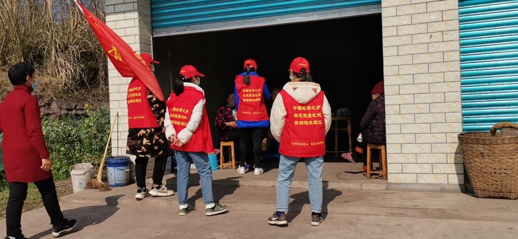 陶雙華與志愿服務隊員入戶摸排村民信息