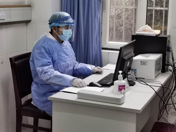 一到龍井苑,就聽說有一名護士已經(jīng)發(fā)燒了。他迅速穿戴好隔離點準(zhǔn)備的防護用品后給病人進行了體溫測量及常規(guī)檢查,病人處于37.5度的低燒狀態(tài),不能排除新型冠狀病毒感染,他立即聯(lián)系120急救車將病人送到指定醫(yī)院南充市第三醫(yī)院做進一步檢查。等待結(jié)果期間,整棟樓的情緒都比較緊張,好在最后檢查排除了冠狀病毒感染,病人用藥兩天后體溫恢復(fù)正常。第三天、第四天又有四人咳嗽、氣緊,因不能排除新型冠狀病毒感染的可能,整棟樓的氣氛日益凝重,有人感到恐慌。鄒劍戎緊急查看患者后一邊安慰病人,一邊迅速聯(lián)系120送到市三醫(yī)院檢查,并隨時追蹤檢查結(jié)果,在排除新型冠狀病毒感染后,他給患者進行了藥物治療并每天追蹤病情變化直到癥狀完全消失。