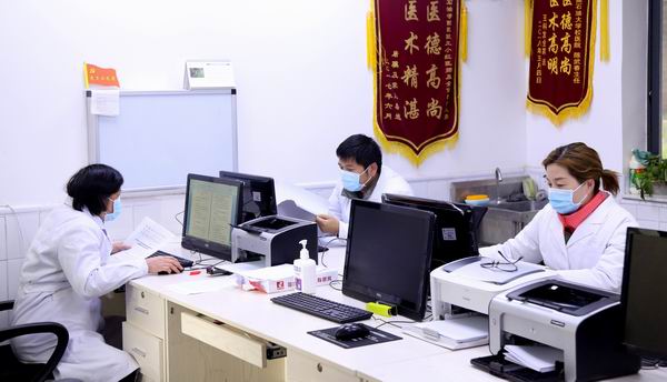 鄒劍戎、朱于芳、余玲在南充校區(qū)醫(yī)院辦公