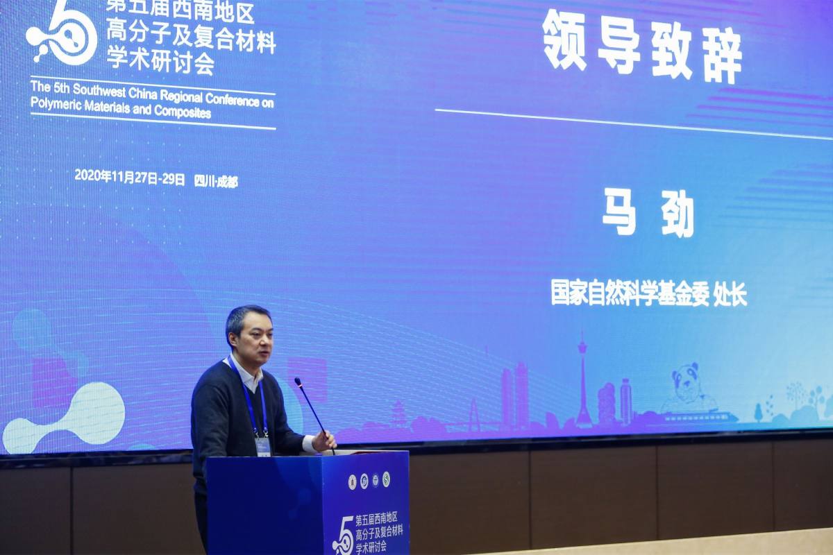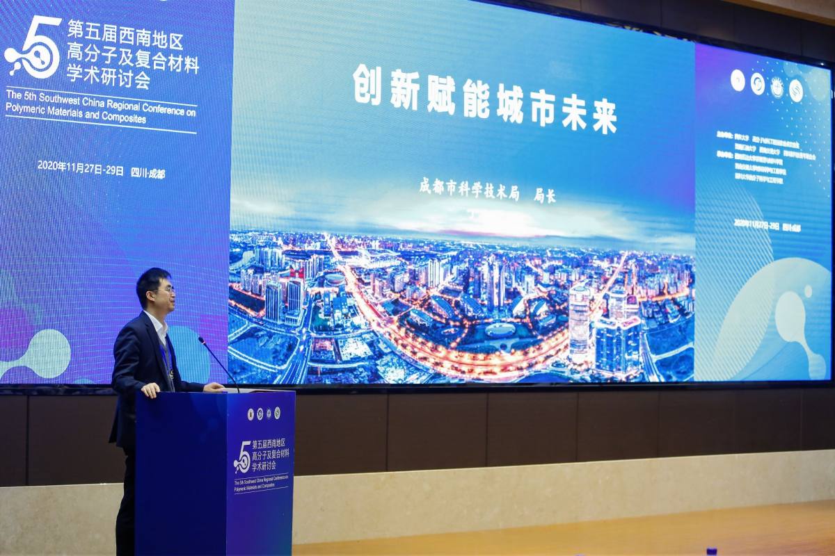 國家自然科學(xué)基金委員會(huì)工程與材料科學(xué)部馬勁處長致辭,他希望大家以本次會(huì)議為契機(jī),圍繞國家重大戰(zhàn)略需求,共同探討高分子學(xué)科的最新成果和前沿?zé)狳c(diǎn)。成都市科學(xué)技術(shù)局局長丁小斌研究員致辭,他代表成都市歡迎各位代表的到來,并介紹了成都市科技產(chǎn)業(yè)的發(fā)展?fàn)顩r和優(yōu)勢。