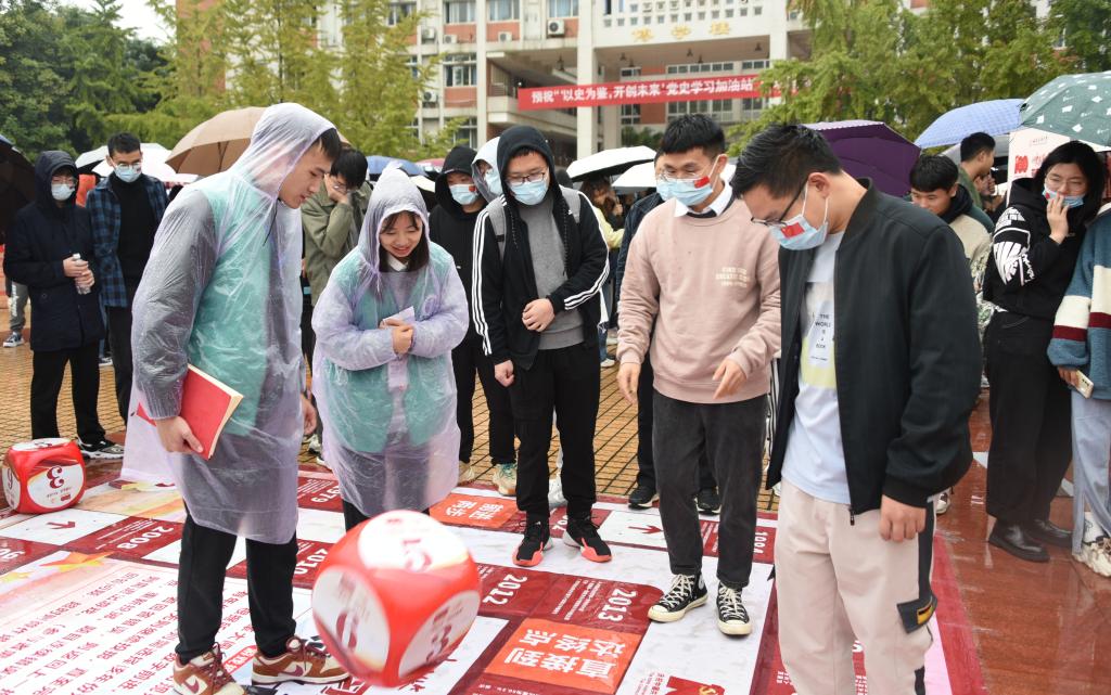 “恭喜你獲得黨校實踐加分10分。”10月21日下午,我校“‘以史為鑒 開創未來’黨史學習加油站”主題活動在博學廣場舉行,外語院王毅同學完成全部8項挑戰,脫穎而出,現場志愿者祝賀她說。