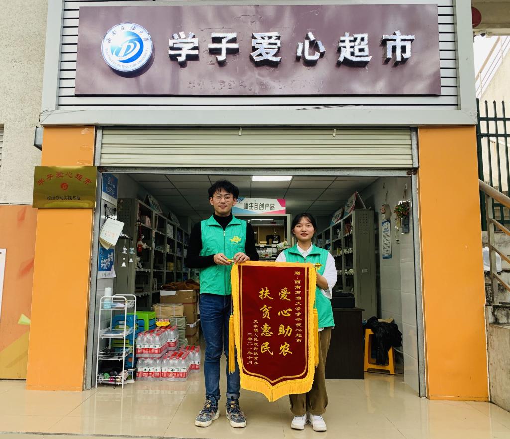 “愛心助農,扶貧惠民。”近日,西南石油大學“學子愛心超市”柜臺側面墻上的一面錦旗引人注目。