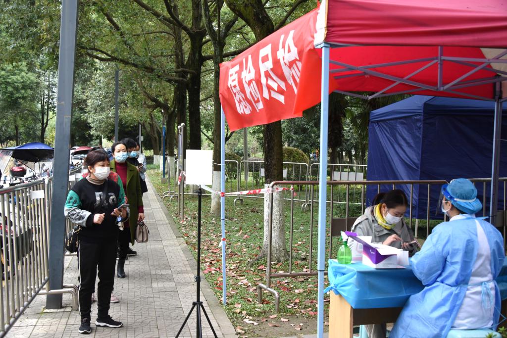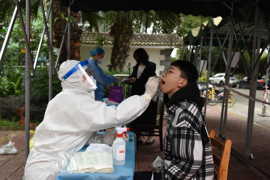 校醫院愿檢盡檢區 師生有序排隊等待核酸檢測
