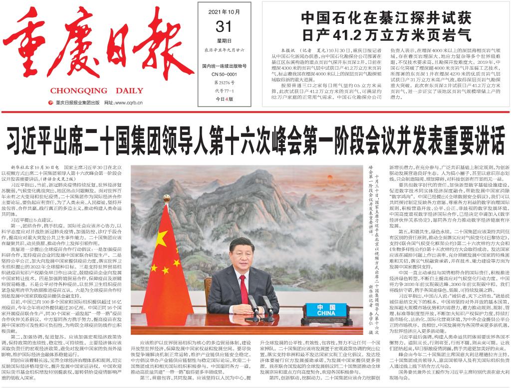 重慶日報頭版對東頁深2井“深層頁巖氣壓裂技術”應用情況的報道