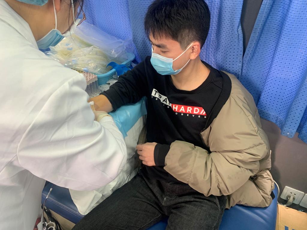 獻血隊伍中,已讀研三的同學馮磊又一次“如約而至”。馮磊同學說,今年是他第九次參與無償獻血。2015年進入石大讀大一前,在父親帶領下他第一次參與無償獻血,深刻認識到這是一件對自身和社會都有益的事情,既能促進身體的造血功能,又能幫助到他人,所以馮磊每年都會參加無償獻血。