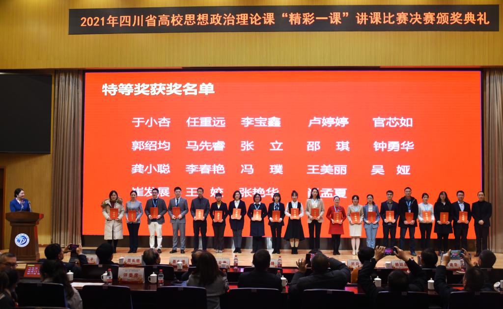 12月10日,2021年四川省高校思政課“精彩一課”講課比賽決賽在我校舉行。四川省教育廳一級巡視員胡衛(wèi)鋒、四川省教育廳宣思統(tǒng)戰(zhàn)處處長李大鵬,西南石油大學(xué)黨委副書記衡彤,西南石油大學(xué)黨委常委、副校長劉向君出席閉幕式并為獲獎選手頒獎。