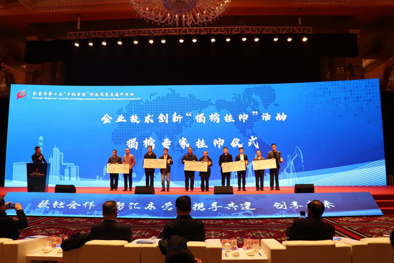 現(xiàn)場還舉行了東營市首屆企業(yè)技術(shù)創(chuàng)新“揭榜掛帥”活動——揭榜專家掛帥儀式,我校賀三教授接受“揭榜專家”專家授印。