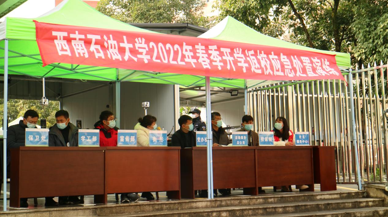 “西南石油大學2022年春季開學返校應急處置演練現在開始。”校黨委副書記衡彤一聲令下,演練開始,現場模擬了發現健康碼為黃碼時的應急處置流程。