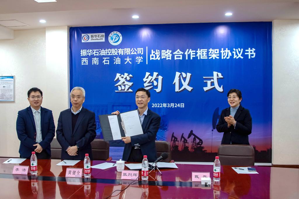 3月24日下午,學校與振華石油控股有限公司舉行線上戰略合作協議簽約儀式。黨委常委、副校長張烈輝,振華石油控股有限公司黨委副書記楊罕出席并代表雙方簽訂協議。