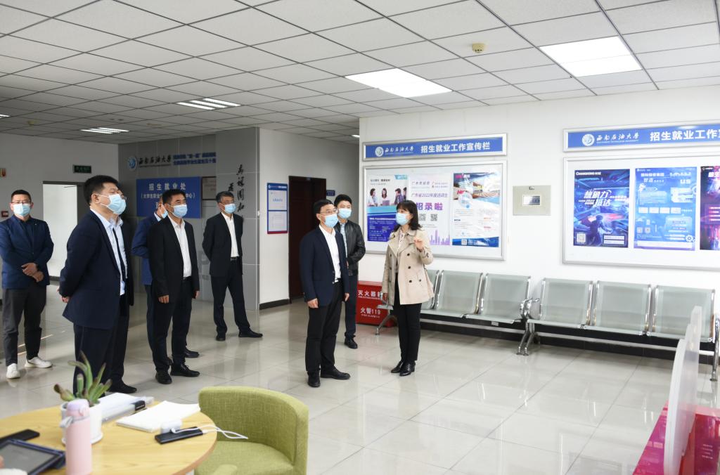 在學校南大門,督查組認真查看了出入學校師生是否嚴格執行佩戴口罩、測量體溫、掃碼亮碼等規定,隨后深入校醫院、學校常態化核酸檢測點、招就處遠程面試室、學生第二食堂、學生公寓24棟隔離觀察點等重點防控區域,實地督查各項疫情防控措施是否落地落實,詳細了解核酸檢測流程、2022屆畢業生就業工作進展、食品安全、隔離點房間設置、公寓消殺、醫療及防疫物資保障等情況,聽取了相關部門負責人的現場匯報,對堅守一線的防疫工作人員表示感謝。要求相關部門負責人和現場工作人員務必嚴格執行防疫規定,壓實防控責任,落實防控措施,確保師生身體健康和校園安全。