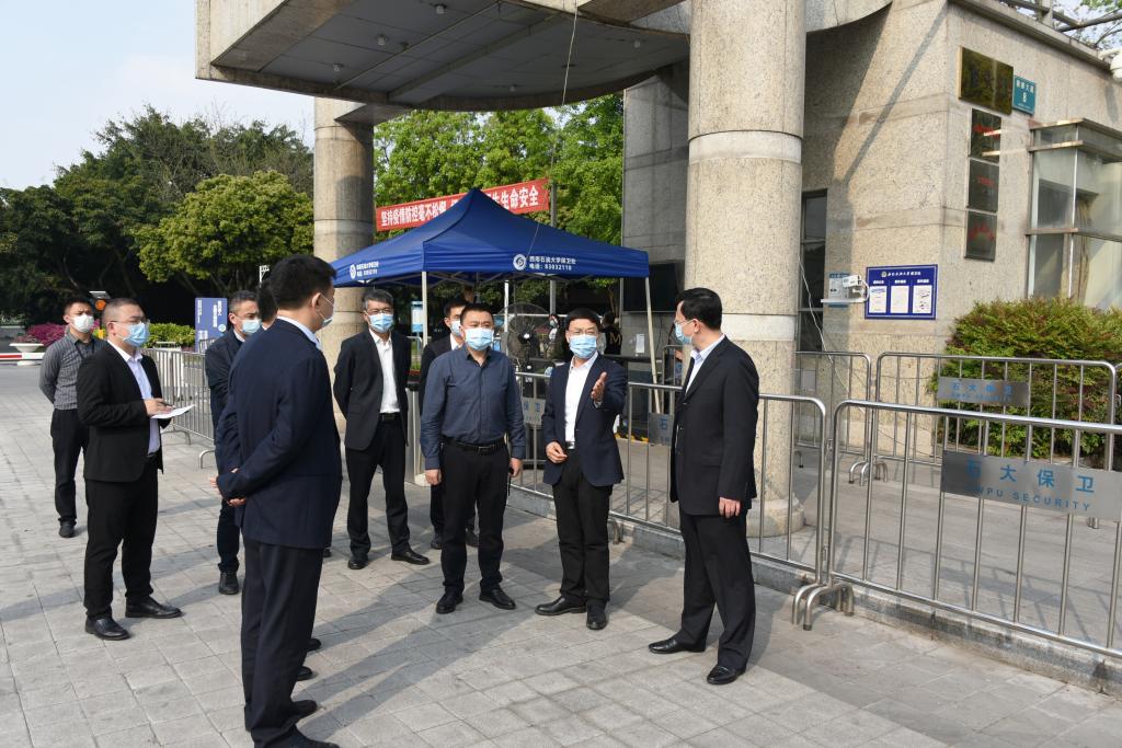 4月7日下午,黨委副書記、校長張烈輝帶領督查組深入校園疫情防控一線督導檢查工作。張烈輝強調,要以高度的政治責任感,從嚴從緊抓好疫情防控措施落細落實,嚴防死守、群策群力,堅決筑牢校園疫情防線和安全底線,統籌抓好疫情防控、畢業生求職就業和教育教學秩序,守好校園一方凈土,切實守衛廣大師生生命健康安全。