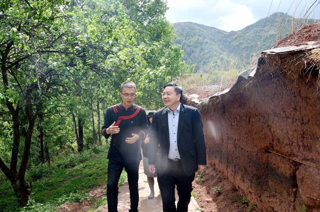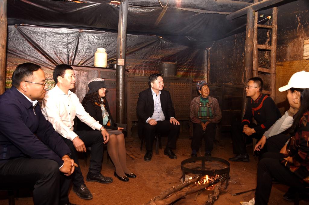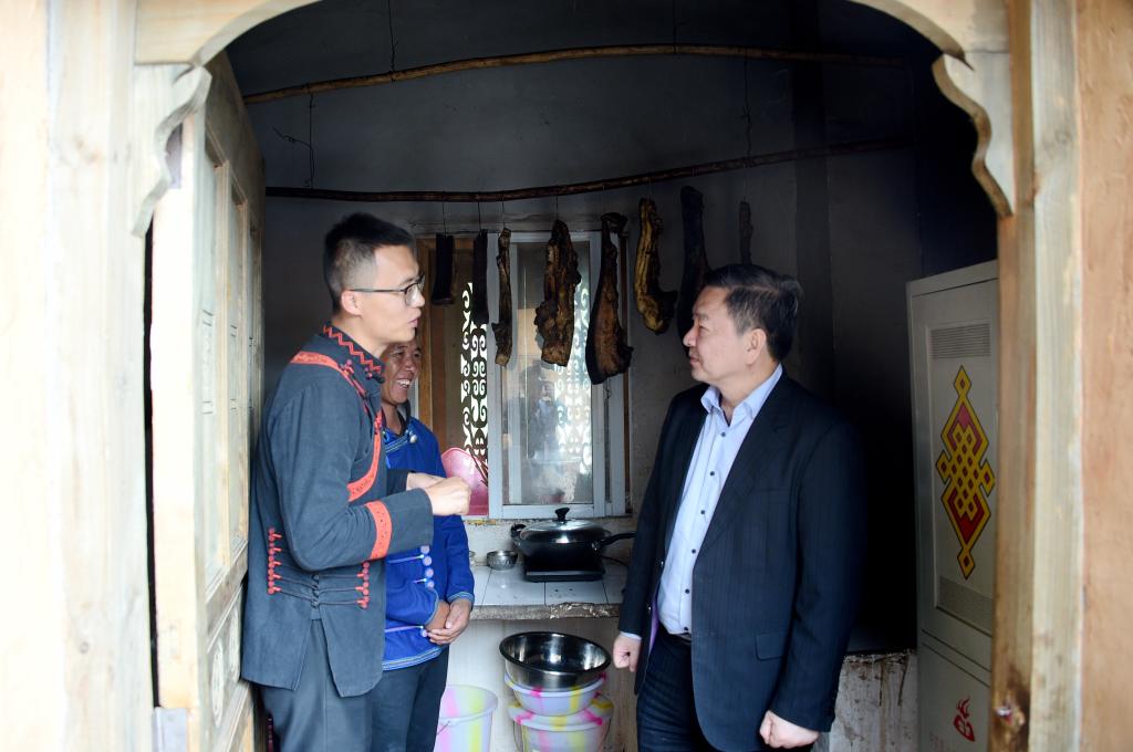 5日下午,陳永燦一行在昭覺縣委常委、縣政府副縣長毛勇,縣委常委、統(tǒng)戰(zhàn)部部長、總工會主席吉克天毅等縣鄉(xiāng)領(lǐng)導(dǎo),和我校派駐三河村第一書記李凱的陪同下,參觀三河村舊址,走進吉好也求、吉木子洛老房子,了解彝族同胞脫貧前的生活條件。2018年,習近平總書記曾看望過這兩家人。