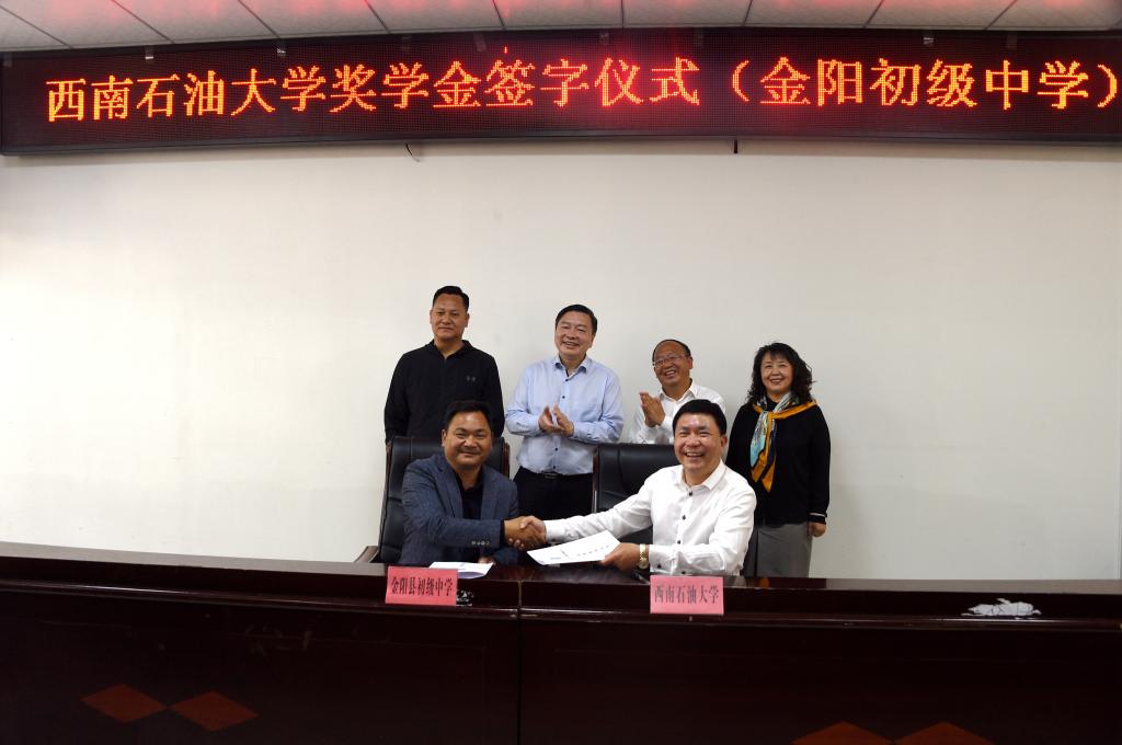 舉行學(xué)校與金陽初級中學(xué)獎學(xué)金協(xié)議簽字儀式