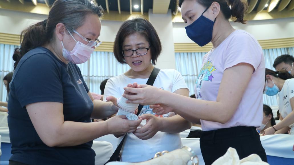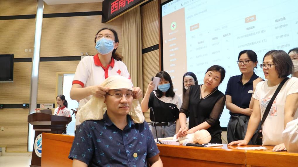 新都區(qū)紅十字培訓(xùn)講師演示頭部創(chuàng)傷包扎
