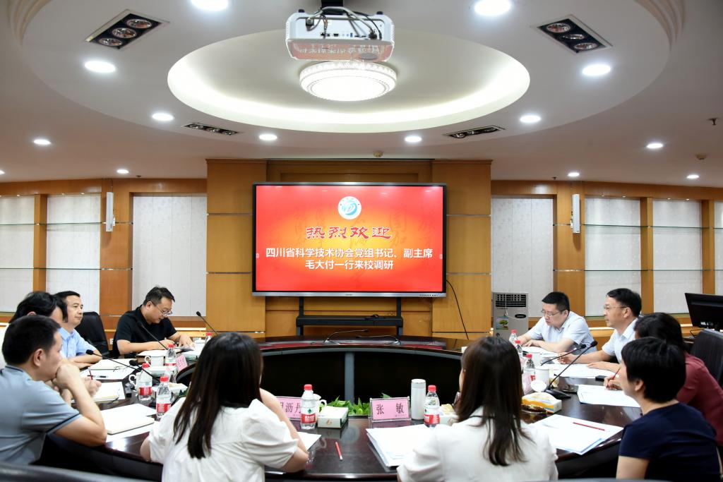6月29日下午,省科協黨組書記、副主席毛大付一行來學校調研科技創新工作,宣介天府科技云服務。校黨委副書記、校長張烈輝,校黨委常委、副校長劉向君與毛大付一行進行了座談。