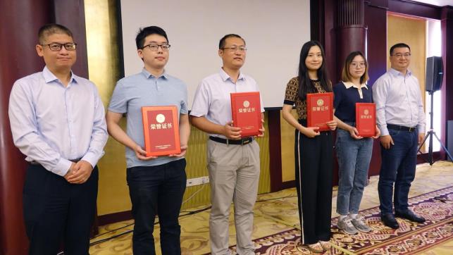 我校教師陳陽(右三)領(lǐng)取優(yōu)秀組織獎