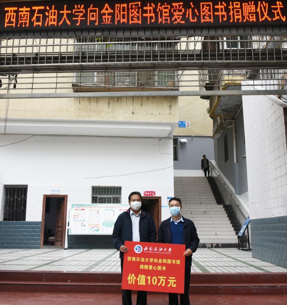 在金陽縣文化廣播電視和旅游局,張烈輝代表學(xué)校向縣圖書館捐贈了價(jià)值10萬元的圖書。這批圖書已于今年暑期送達(dá)金陽縣圖書館。
