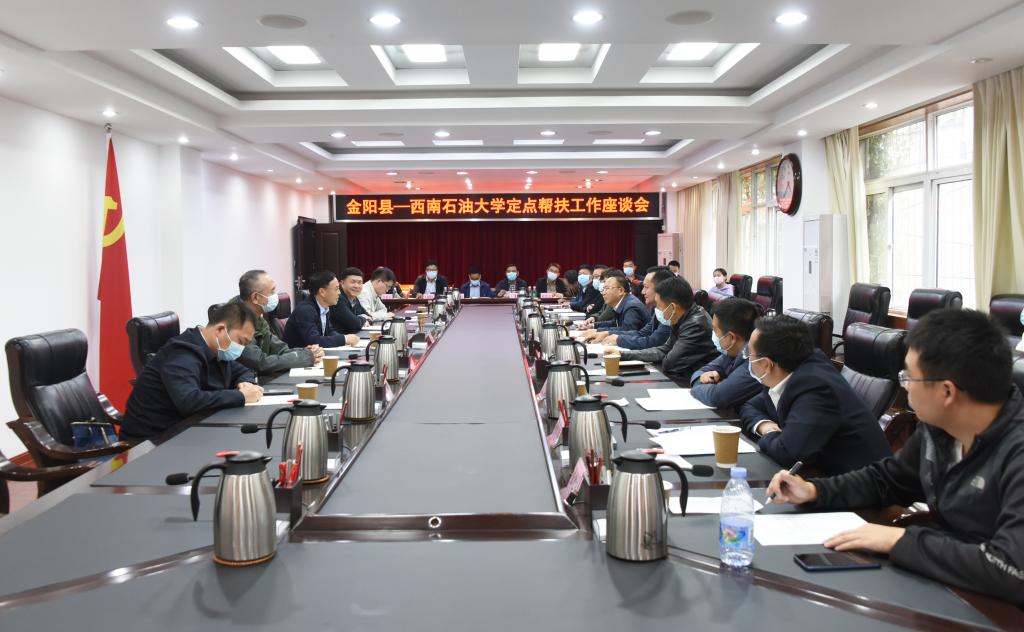 隨后,學(xué)校與金陽縣委、縣政府召開定點(diǎn)幫扶工作座談會。金陽縣委書記方鳳華主持會議,縣委副書記、縣長伍果匯報(bào)了金陽縣鞏固拓展脫貧攻堅(jiān)成果同鄉(xiāng)村振興有效銜接情況,及西南石油大學(xué)幫扶金陽情況。縣校雙方共同研究了下一步及2023年的定點(diǎn)幫扶工作。